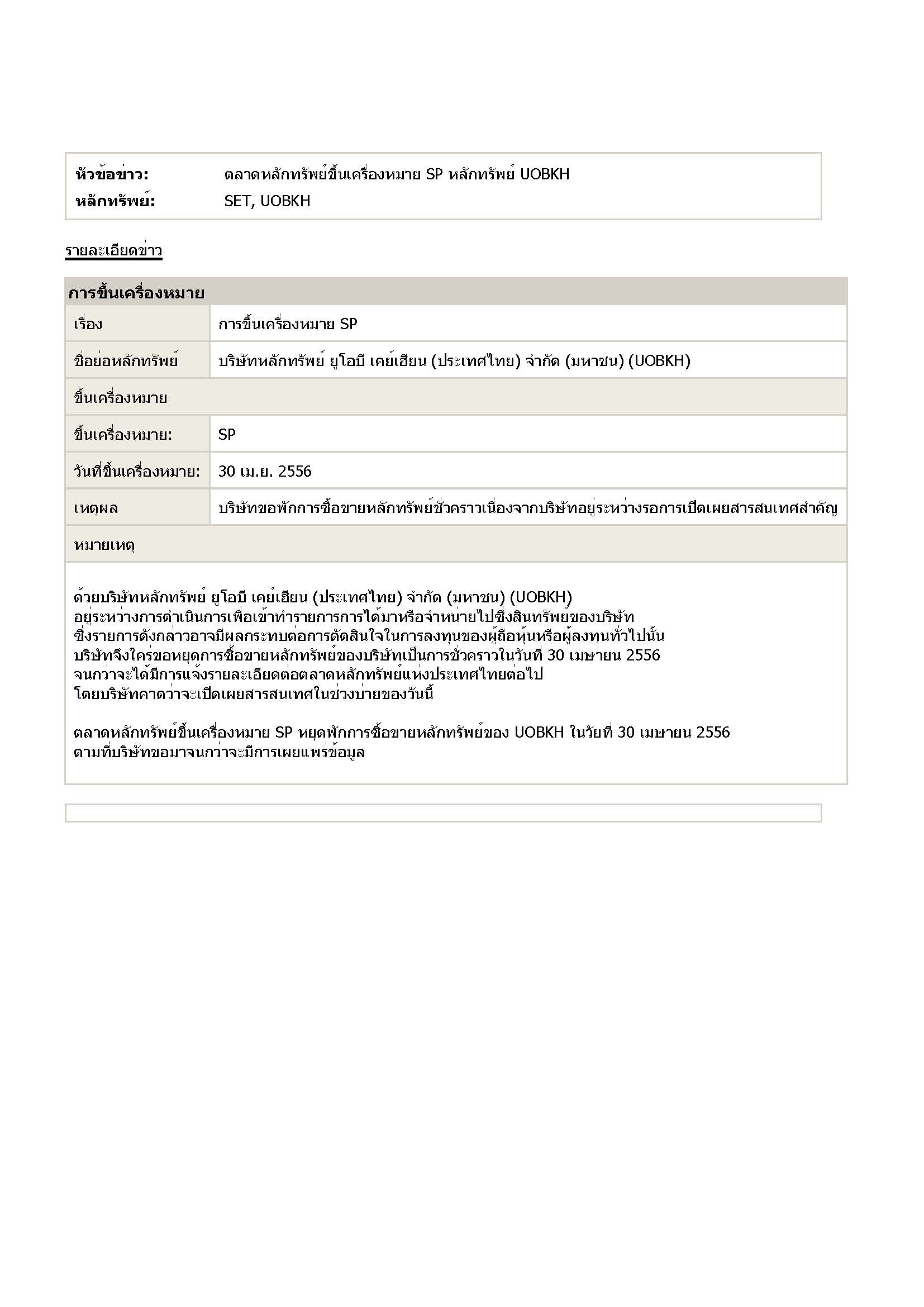 UOBKH . > โอกาศที่จะออกจากตลาด