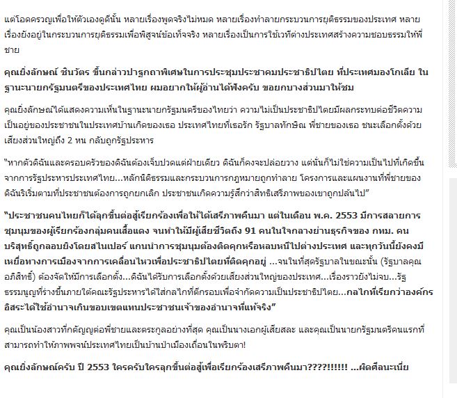 @@มุมกาแฟ NONแดง (มุมนี้ไม่มีใครเป็นเสื้อแดง)อังคารที่ 30/4/56 :คิดอย่างไรกับปาฐกถาของยิ่งลักษณ์ที่มองโกเลีย