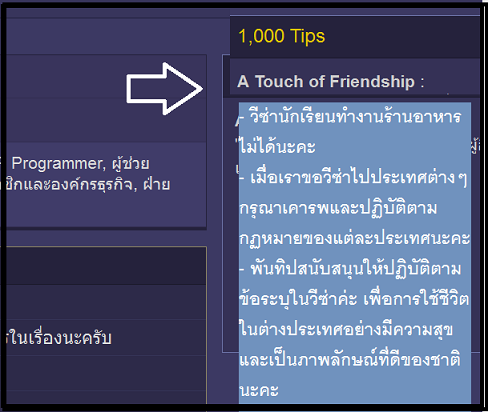 อีกข้อเสนอแนะหนึ่งคือ การขึ้นแบนเนอร์หรือทิป ในห้องไกลบ้าน บนมุมขวาของเพจ ดังข้อความตัวอย่าง เช่น