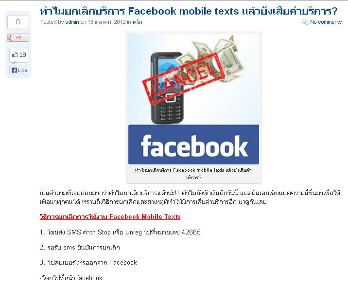 วิธียกเลิก SMS Facebook จาก vasworx.com