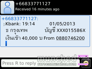 แปปเดียวเท่านั้น มี sms เข้ามาดังรูปเลย