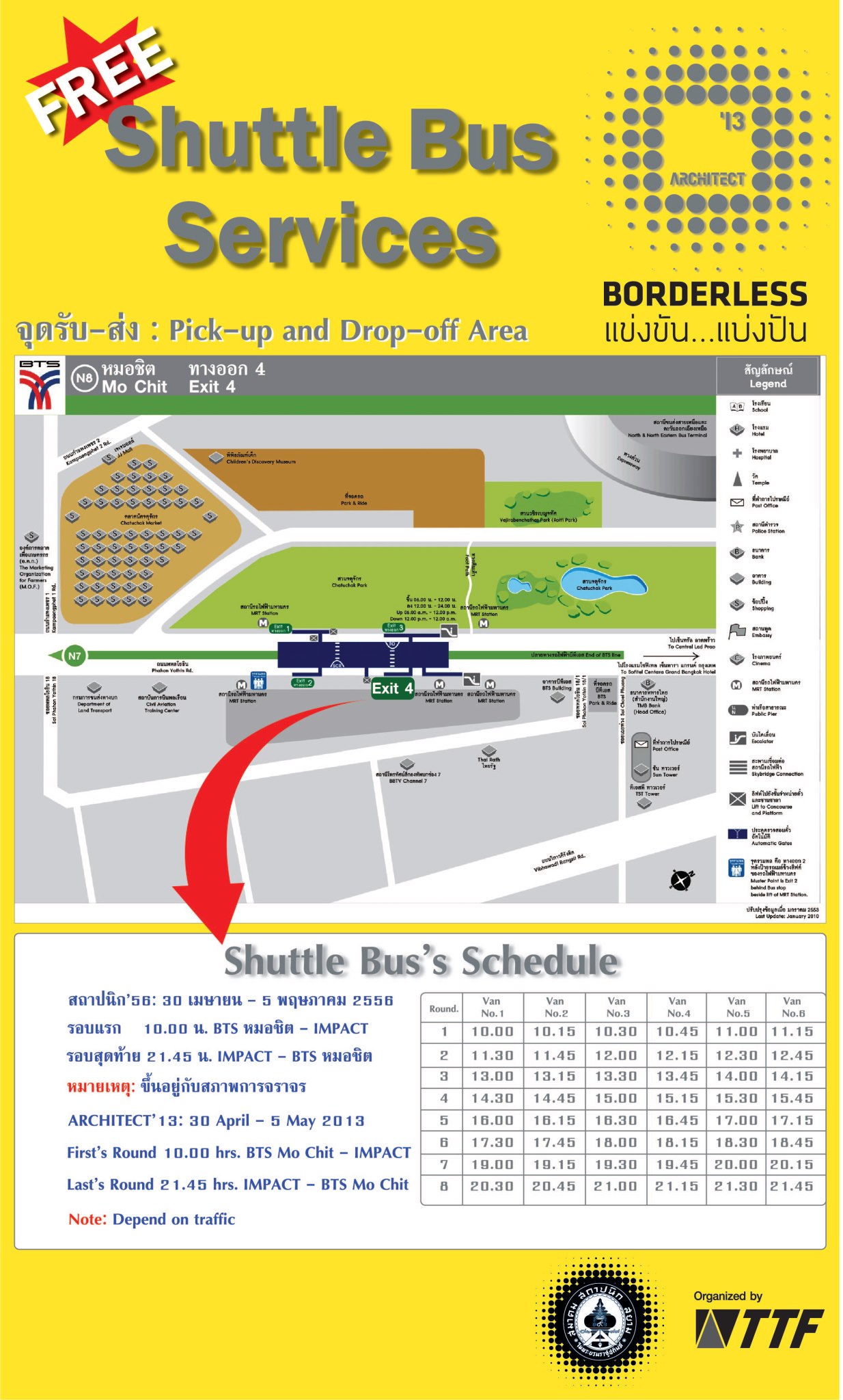 ซึ่งบอกว่า ฟรี บริการรถรับส่งจาก bts หมอชิต-หน้างาน