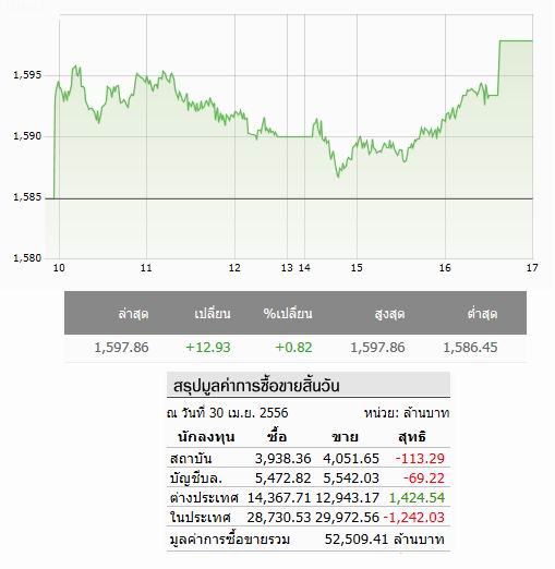 ปิดตลาดที่เนิน 1,597.86 +12.93 จุด เป็นเนินสูงสุดของวัน