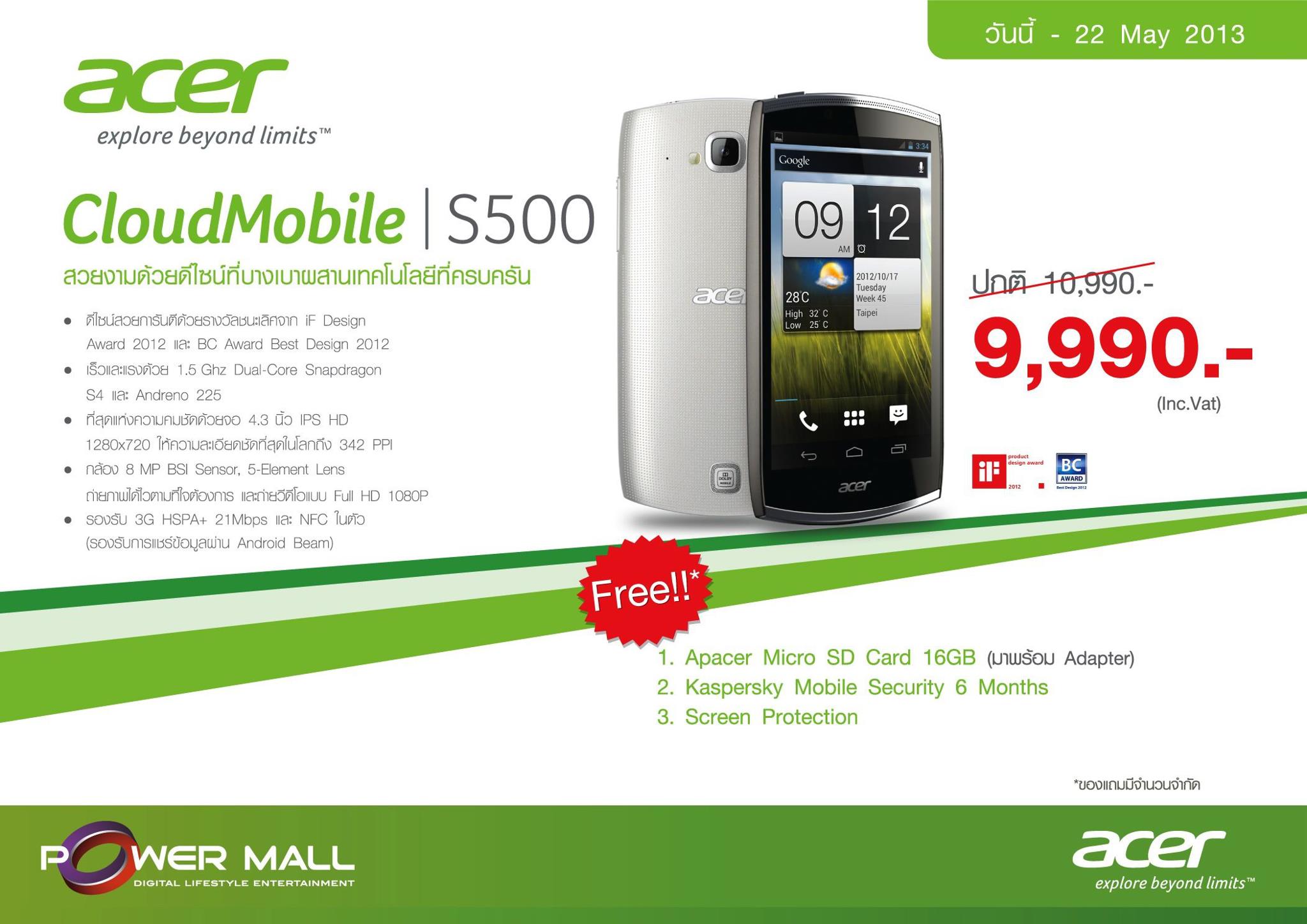 ณ.ตอนนี้ Acer CloudMobile S500 ราคา 9900