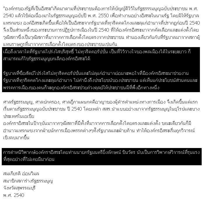 สิ่งหนึ่งที่รธน 40ใส่ไว้นั้น คือองค์กรอิสระ รวถึงศาล หลังก่อกำเนิดขึ้น ก็ดำเนินการ ปฏิบัติการกันมาเรื่อย