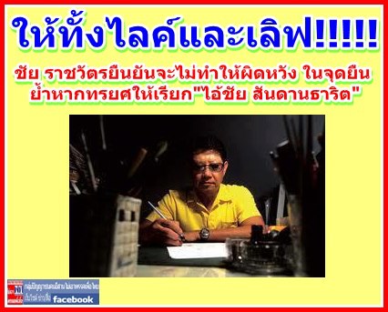 "ชัย ราชวัตร" ยืนยันไม่ทำให้ผิดหวังในจุดยืน ย้ำหากทรยศให้เรียก"ไอ้ชัย สันดานธาริต"