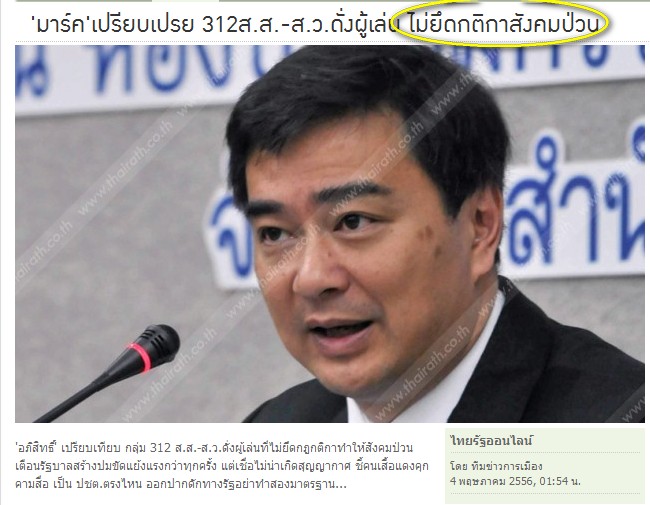 'มาร์ค'เปรียบเปรย312ส.ส.-ส.ว.ดั่งผู้เล่น ไม่ยึดกติกาสังคมป่วน..ป่วนอยู่ทุกวันนี้เพราะใครที่ไร้ความรับผิดชอบชั่วดีแหลเอ๊ย