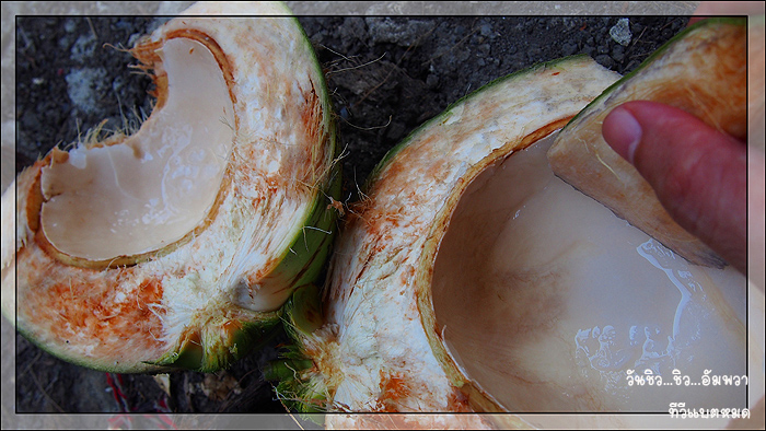 อากาศมันร้อน...สับมะพร้าวมน้ำหอมมาดับร้อนครับ...แต่เลือกผลอ่อนไปหน่อย แฮ่ๆ..