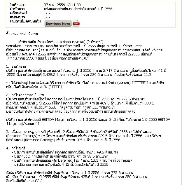 งบ TT&T ออกมามีผลดีกับ JAS ไหมครับ