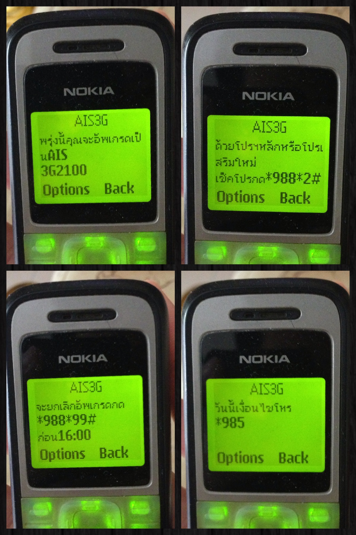หลายครั้งแล้วที่ AIS จะอัพเกรดเบอร์ไปเป็น 3G 2100 ทั้งๆ ที่พื้นที่ใช้งานอยู่ไม่มี 3G 2100 มีแต่คลื่น 900 กดยกเลิกไปหลายครั้งแล้ว ทางหน่วยงานวิศวกรมาเช็ดหลายรอบก็แก้ปัญหาไม่ได้แล้วยังมาอัพเกรด เป็น 3G