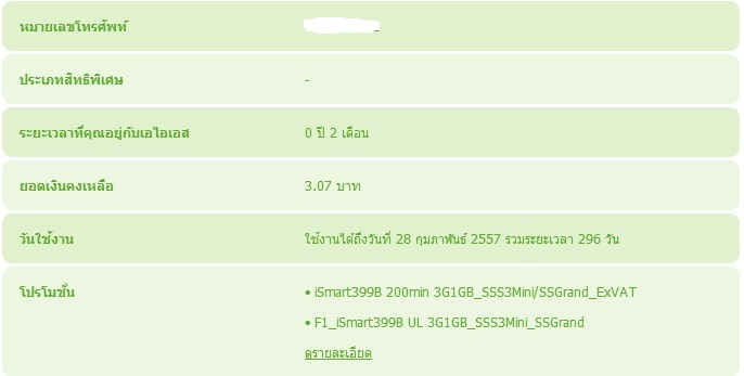 1. ตรวจสอบการเปลี่ยนโปรโมชั่นให้ถูกต้องตามกระทู้ที่อ้างถึง คือ iSmart 399 Baht 3G 1GB + EDGE/GPRS Unlimited ของระบบเติมเงิน One 2 Call