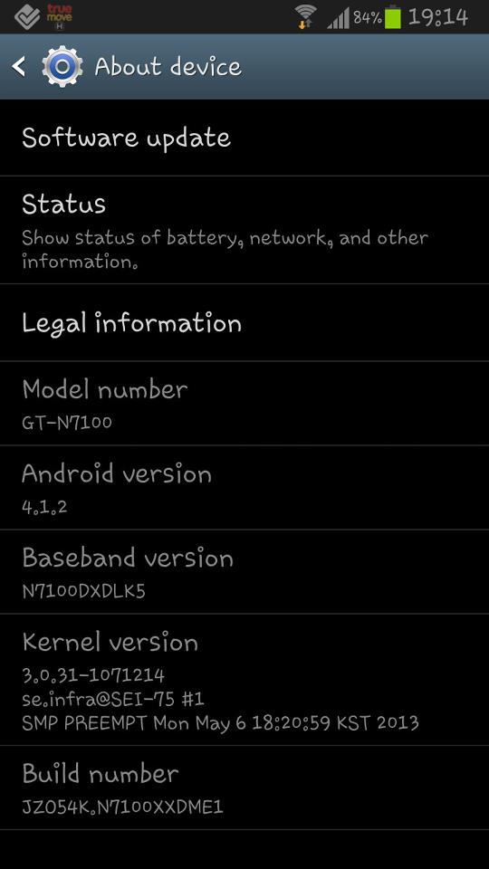 .. GT-N7100 Thailand 2013 April 4.1.2 N7100XXDMC3 N7100OLBDMD1 .. .. อัพได้ทั้ง OTA , Kies , Odin ครับ .. .. อัพละ ยังไม่เห็นมีอะไรเพิ่มขึ้น "มีแต่ตัว