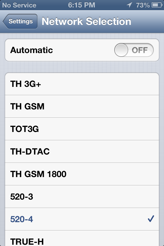 ทำยังไงให้เครื่องจับสัญญาณ 3g 2100 ก่อน 850 บ้างครับ ผมใช้เครือข่าย true-h โทรศัพท์ iphone 4s ครับ ลองตั้งค่า จับสัญญาณ 520-4 แบบ manual จะขึ้น no service ต้องเปิดโหมดเครื่องบินแล้วปิดถึงจะใช้สัญญาณ