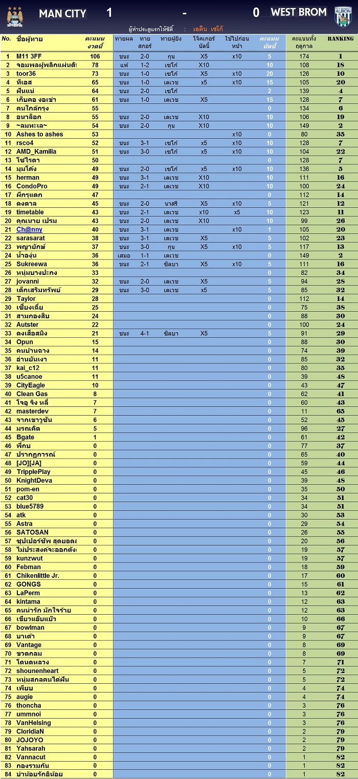 ทายว่าแมนซิตี้เสมอ ด้วยสกอร์ 0-0 ไม่มีผู้ยิงประตู ไม่ใช้โจ๊กเกอร์
