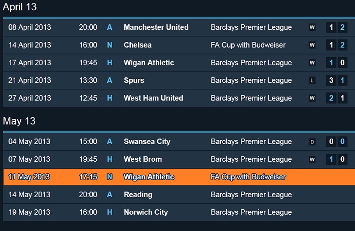 โปรแกรมและผลการแข่งขัน Manchester City ฤดูกาล 2012/2013
