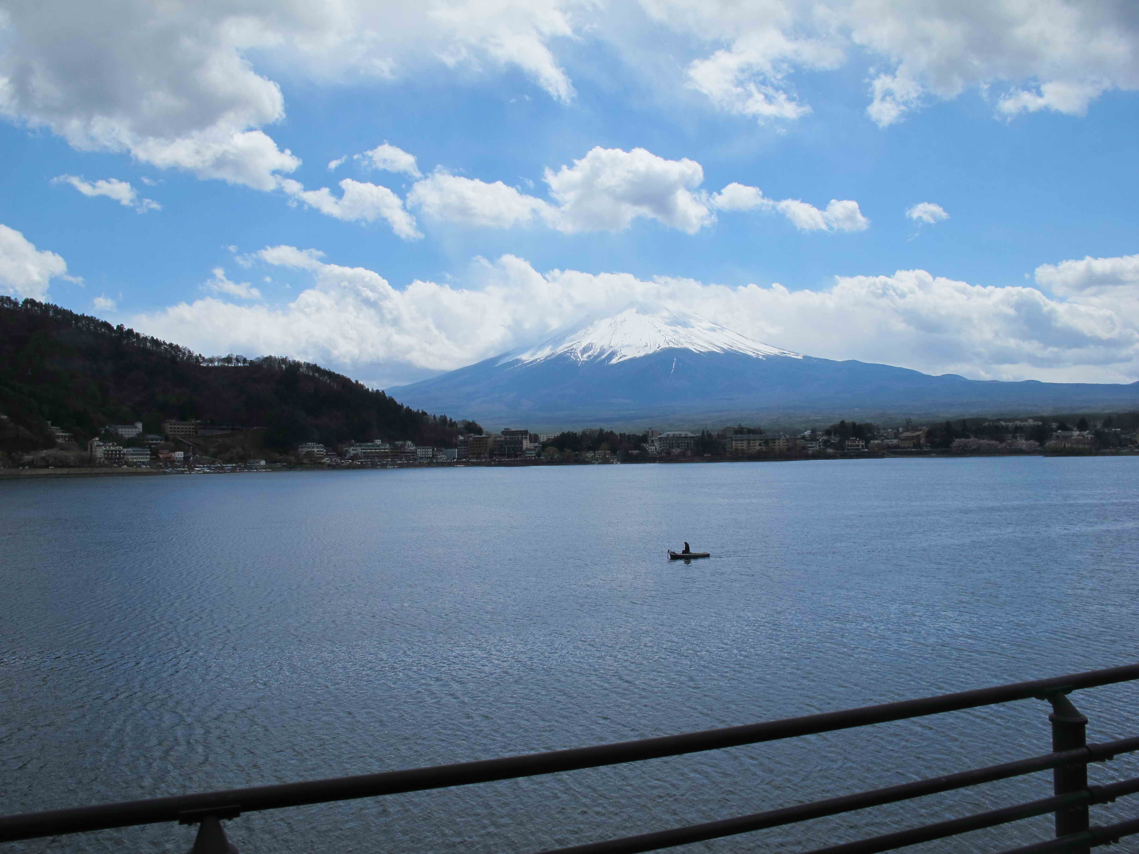 Fujisanวันนั้นฟ้าโปร่งมีเมฆปกคลุมปล่องภูเขาไฟนิดหน่อย ลมเย็นกระทบหน้า ซากุระบานบ้างตามข้างทางที่รถไฟวิ่งผ่าน happyมว๊ากก