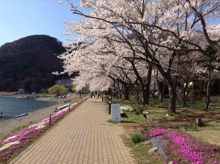 ภาพนี้ถ่ายตรงทะเลสาป ซากุระสีชมพูตัดกับสีฟ้าของท้องฟ้าและสีน้ำเงินของพื้นน้ำ สวยจนเกินคำบรรยายจริงๆๆค่ะ