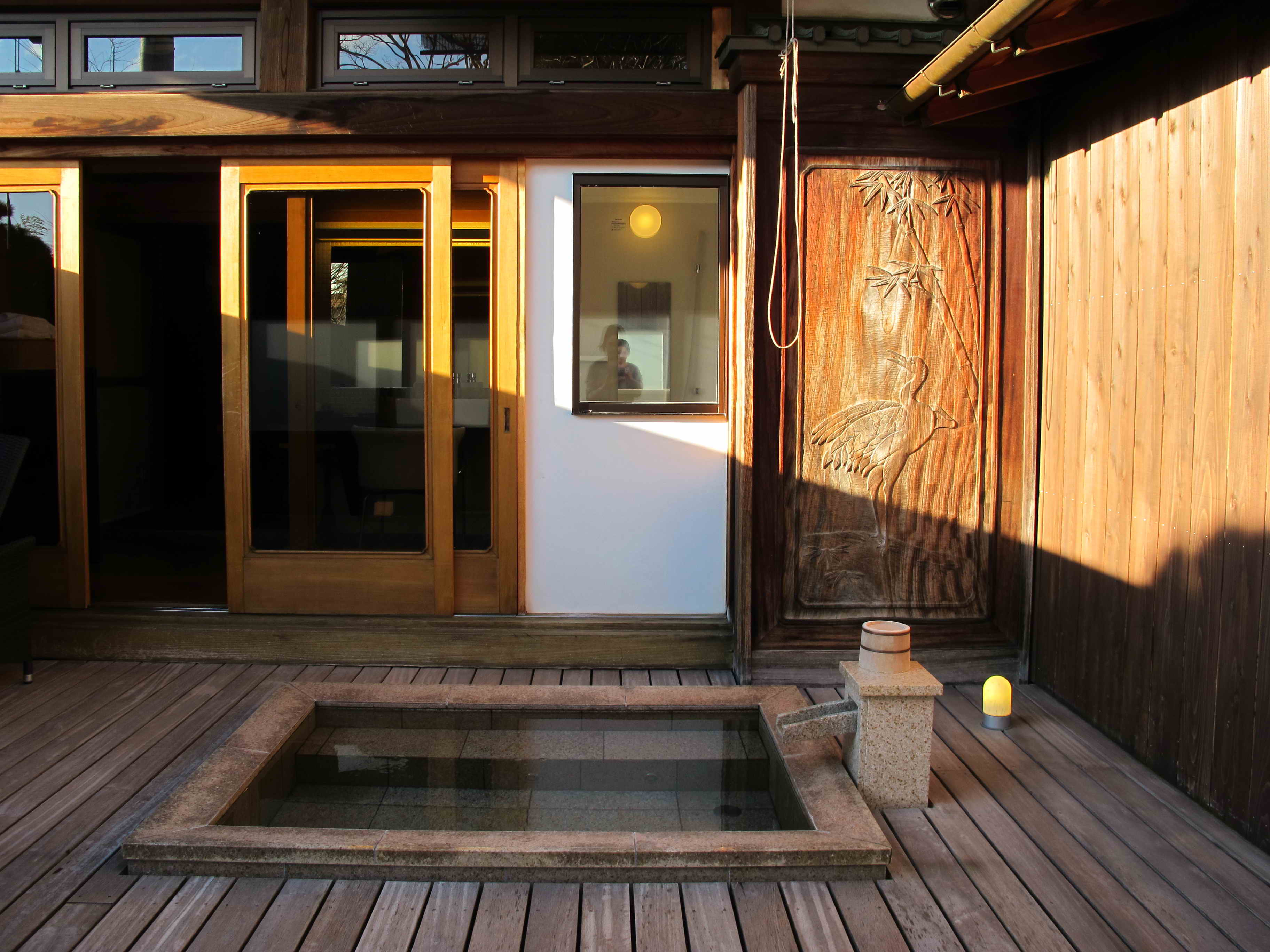 บ่อonsenอยู่นอกตัวบ้าน บ่อแบบพอดีตัวแช่แบบสบายๆ (แช่จนเปื่อยเลย)