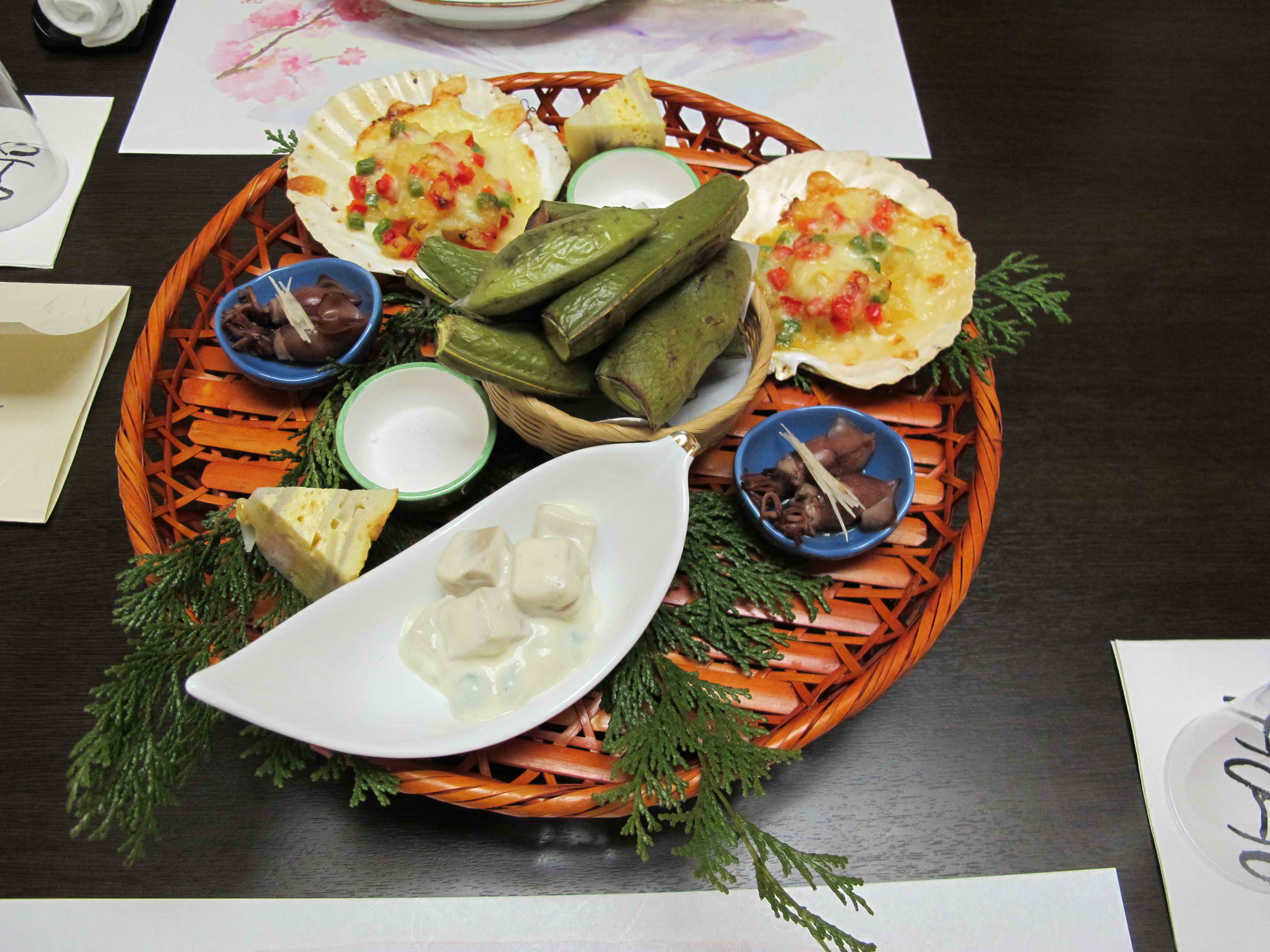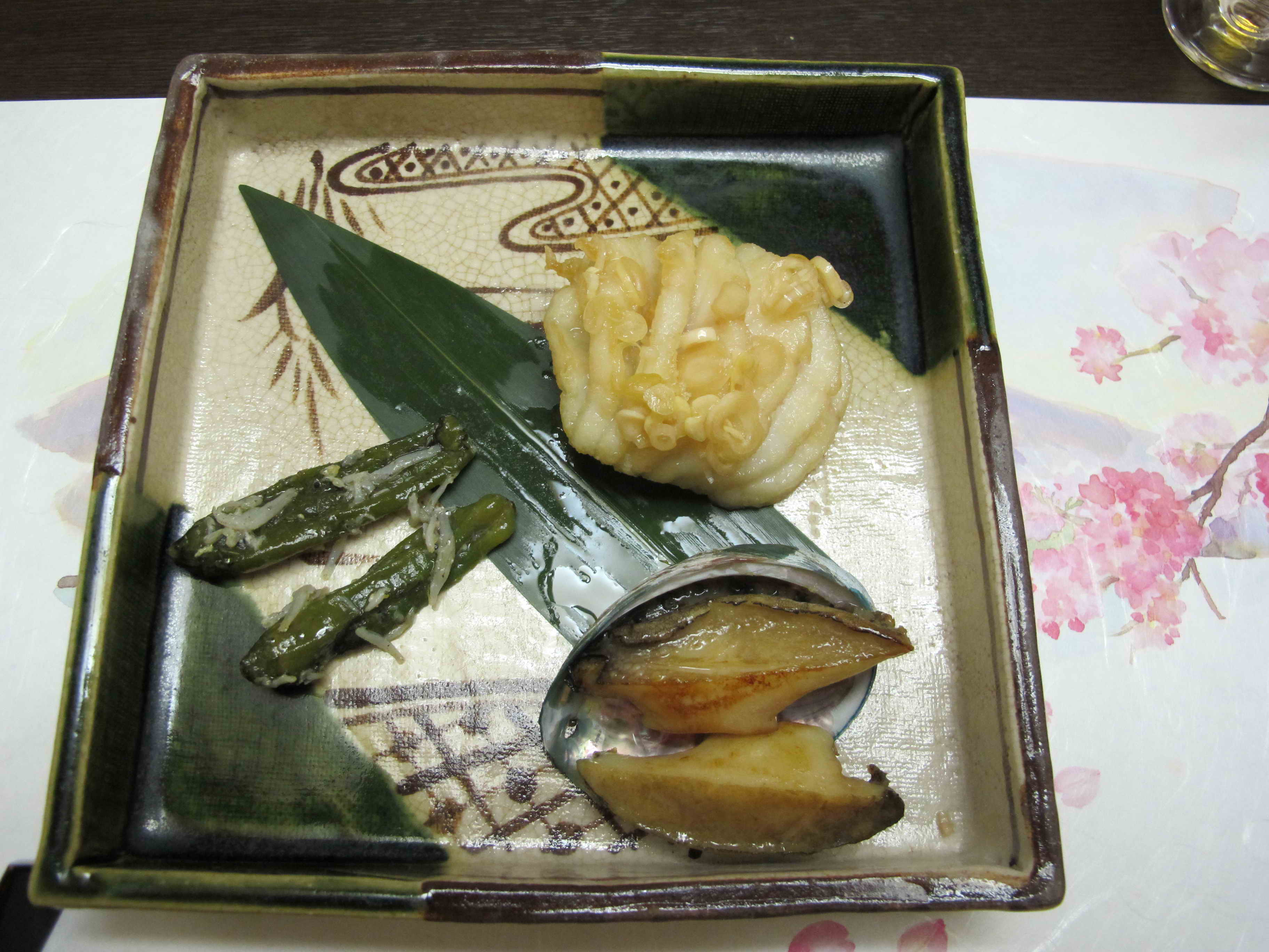 ออเดริ์ฟรวม 5 อย่าง ได้แก่ ถั่วยักษ์เผาเกลือ ปลาหมึกต้มซีอิ๊วตัวน้อย(อร่อยค่ะนิ่มๆๆหอมซีอิ๊ว หวานนิดๆๆ) ไข่ม้วน