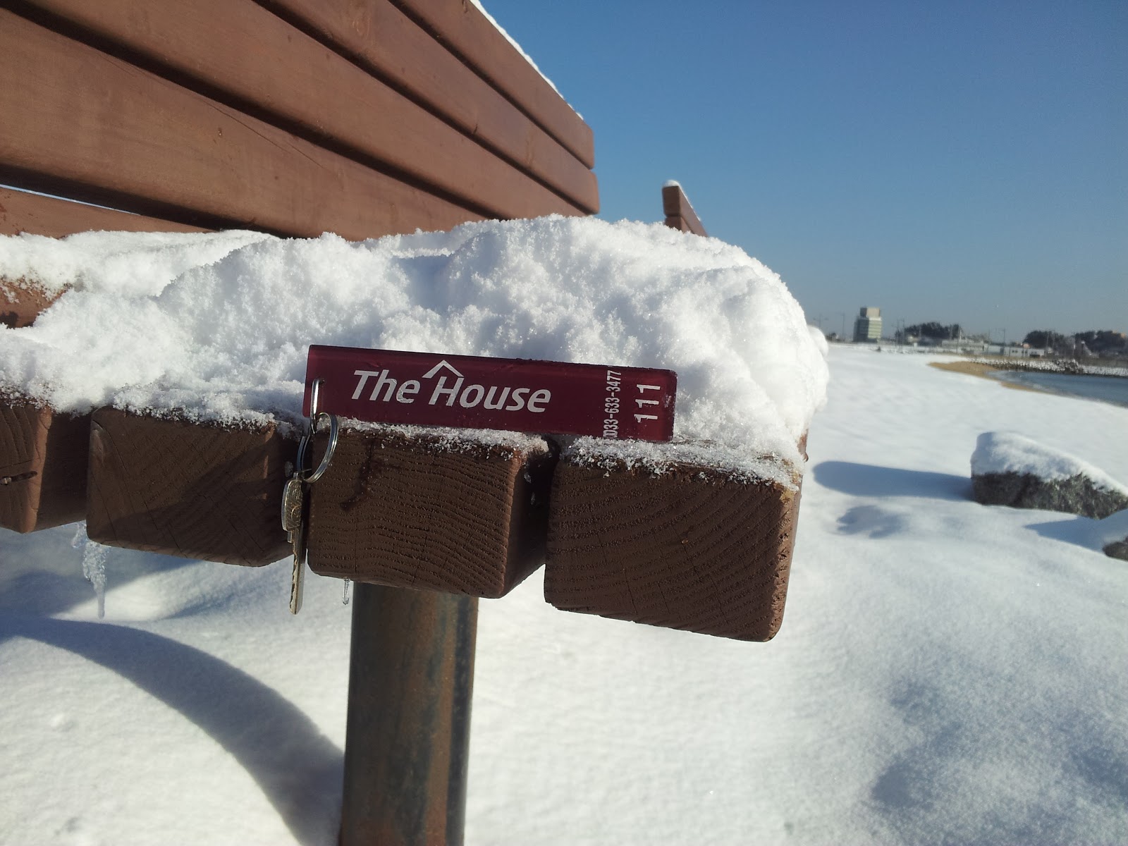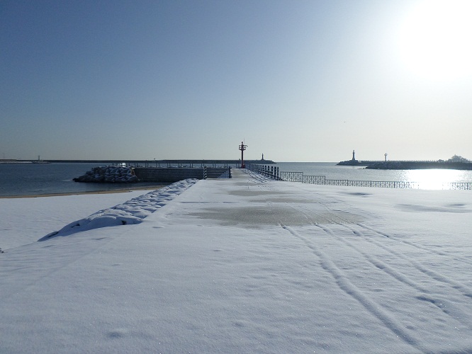 หาดนี้มีป้ายเตือนห้ามลงเล่นน้ำด้วย..ภาพที่เราเห็นตอนเดินไปถึงหาดครั้งแรกคือ...มีหิมะ แล้วก็ต่อด้วยหาดทราย แล้วก็เป็นน้ำทะเล...สวยนะในความคิดเรา...บริเวณหาดมีม้านั่งเตรียมไว้ด้วย...แต่เราคงนั่งไม่ได้เพราะหิมะกองอยู่หนามาก...