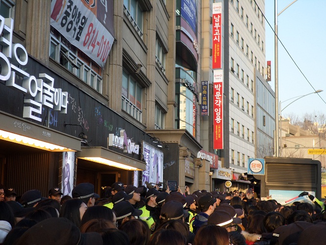 มื่อคิดเช่นนั้นก็เก็บของออกไปกินอาหารเช้าแล้วกลับเข้าโซล..ระหว่างที่กำลังจะกลับ..เพื่อนของเราก็ส่งข่าวมาบอกว่า 2pm จะมีงานแฟนไซน์ของแว่นตา...ลองไปสิ..เราก็ขอข้อมูลเพื่อนไป...โดยที่เพื่อนก็รู้เพียงว่าไปลงรถสถานีไหน..แล้วก็มีรูปคนยืนต่อแถวกัน...เราก็คิดว่าจะไปถูกผรอหว่ะ...ไม่รู้ว่าจะนั่งรถไฟไปถูกป่าว .ไปแล้วจะเจอไหม?...แต่เรามีแพลนของเราตั้งแต่อยู่ไทยแล้วว่าจะไปดูจุนฮยองวงบีสท์ถ่ายละครแต่สถานที่ถ่ายก็ไปไกลเหมือนกันแล้วก็ไม่รู้ด้วยว่าจะได้เข้าไหม?...ต้องเลือกละที่นี้...ไว้ไปถึงโรงแรมที้โซลแล้วค่อยว่ากัน