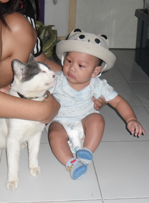 ตลอดเวลาพี่ถุงแป้ง(แมว)จะช่วยดูแลน้องคิวมาเกือบตลอด 5 เดือนเลย แรกๆมีอิจฉา บอกว่า ช่วยเลี้ยงน้องหน่อย รักน้องไหม เดินหนี เมินหน้า พอตอนสี่เดือนมานี้พาลูกไปเดินเล่นบ่อยๆ พี่ชายถุงแป้งตามติดเลยค่ะ วนๆอยู่ตรงน้องนั่นหล่ะ 555 แต่เขารู้เรื่องนะคือ เข้าใกล้น้องเกินเอวไม่ได้ แล้วก็จะไม่ขึ้นที่นอน เป็นพี่ชายที่แสนดีนอนเฝ้าอยู่ห่างๆ