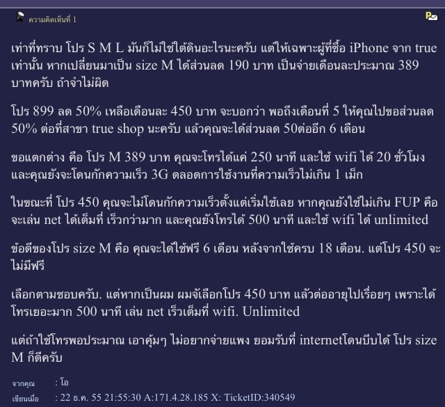 อยากจะย้ายจาก AIS ไป True package ปัจจุบันของ AIS ที่ถืออยู่เป็นแบบนี้ แพ็กเกจ iSmart899_supersave450 ค่าบริการรายเดือน 899บาท (พิเศษรอบบิล1-12: 450บ.) โทร/VDO call รวม 500 นาที, Internet ไม่จำกัด (ค