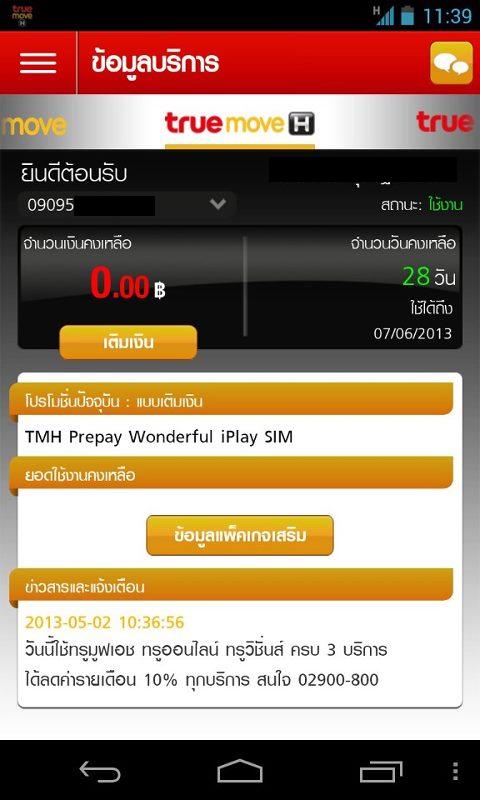 ผมได้เติมเงินเข้าเบอร์ Truemove H ของผม เมื่อวันที่ 11 ที่ผ่านมา โดยที่ถอดซิมเก็บไว้ตลอด แต่วันนี้เข้าไปเช็คใน iService พบว่ายอดเงินคงเหลือแค่ 0.58 บาท ไม่ทราบว่ายอดเงินที่เติมหายไปไหนทั้งๆ ที่ไม่ได้ใ