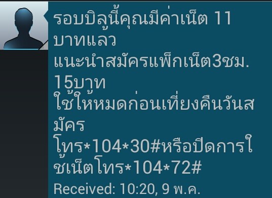 แต่เมื่อเช้ามี sms เข้ามาบอกให้สมัครแพ็กเน็ต 3 ชม. เนื่องจากมีค่าใช้จ่ายตามรูป
