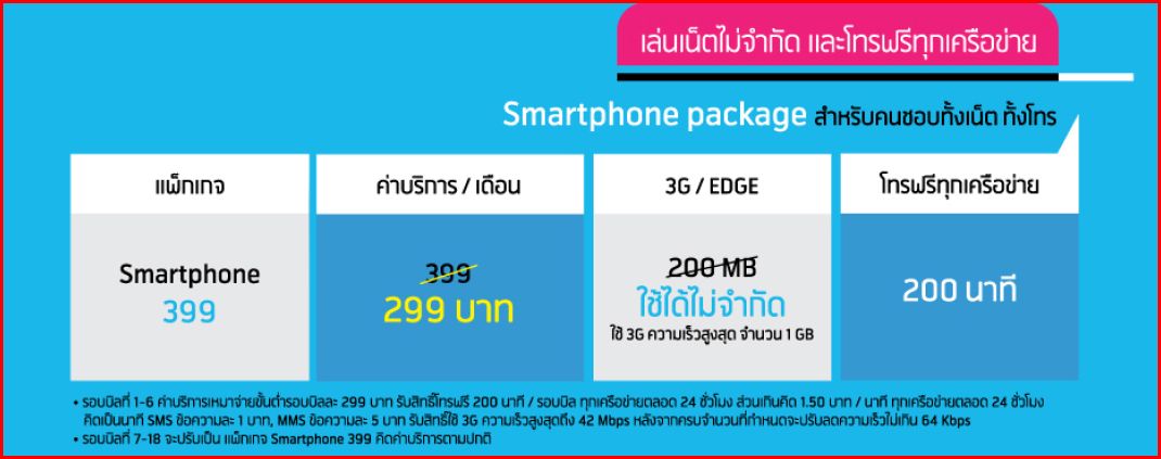 ตอนนี้ใช้โปร Smartphone เหมาจ่ายเล่น 3G/EDGE ไม่จำกัด ตามนี้