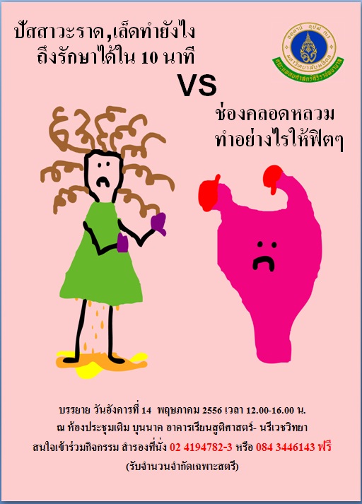 มีของแจก มีกิจกรรมให้เล่น มีชิงรางวัล มีอาหารเบรคเลี้ยง งานนี้ฟรีตลอดรายการ แถมมีของติดมือกลับบ้านด้วย แต่ต้องโทรมาสำรองที่นั่งก่อน รับเฉพาะสตรีประมาณ 150 คน วันอังคารที่ 14 พค 2556 เวลา 12-16 น .ที่ห้องบรรยายเติม บุนนาค โรงพยาบาลศิริราชค่ะ