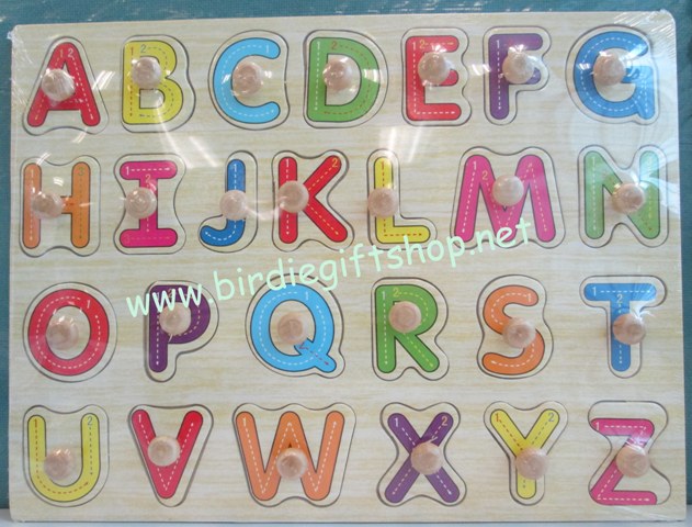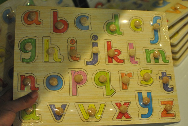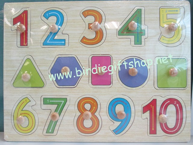 13. จิ๊กซอว์ไม้แบบหมุดมี 3 แบบ คือ ABC, abc, และ 1 2 3 ขนาดกว้าง 22 ซม. ยาว 30 ซม. หนา 0.6 ซม. ราคา 85 บาท