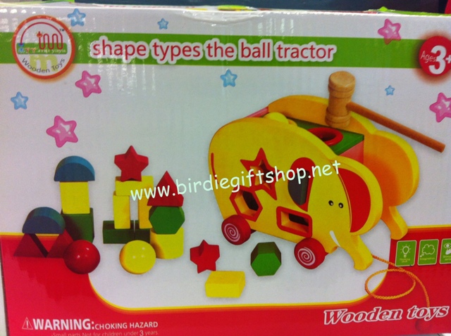 12. Shape Types The Ball Tractor บล็อคหยอดรูปช้าง เป็นรถลากได้ ด้านบนมีลูกบอลเล็กและฆ้อนสำหรับตีลงช่อง ขนาด ยาว 21 ซม. ลึก 14.5 ซม. สูง 13 ซม. ราคา 330 บาท