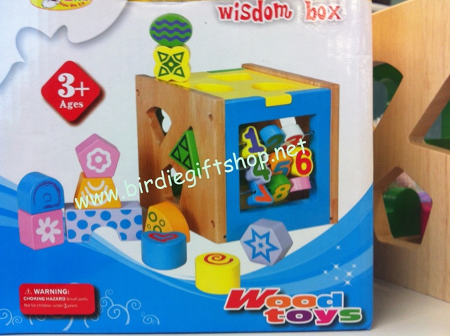 11. Digital Shape Wisdom Box เป็นกล่องไม้สำหรับหยอดรูปทรงเรขาคณิตได้ 4 ด้าน อีกด้านเป็นราวแขวนตัวเลข ขนาดกว้าง 14.5 ซม. ลึก 14.5 ซม. สูง 15 ซม. ราคา 450 บาท
