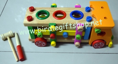 14. รถไม้ ฝึกให้เด็กประกอบมีฆ้อน ไขควงในชุด ขนาด 28x12x12.5 ซม. ราคา 400 บาท