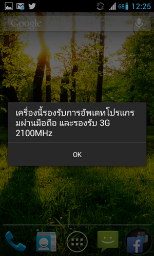 เช็คความพร้อมของมือถือผ่านเบอร์ *571# ก็บอกว่า "เครื่องนี้รองรับการอัพเดทโปรแกรมผ่านมือถือ และรองรับ 3G 2100 Mhz"