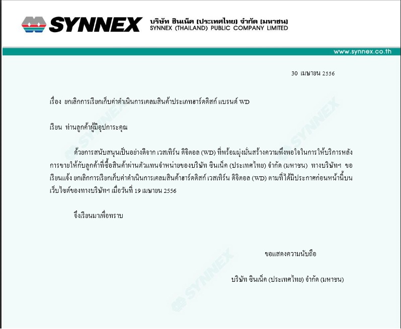 เห็นว่าเป็นประโยชน์ดีเลยเอามาฝากกันครับ ตอนนี้ทั้ง WD และ Seagate ไม่มีค่าธรรมเนียม 300 บาท ในการเคลมแล้ว หากใครได้ติดตามข่าว IT ช่วงนี้มาซักพักจะพบว่า Seagate กับ WD ได้เรียกเก็บค่าธรรมเนียม 300 บาท