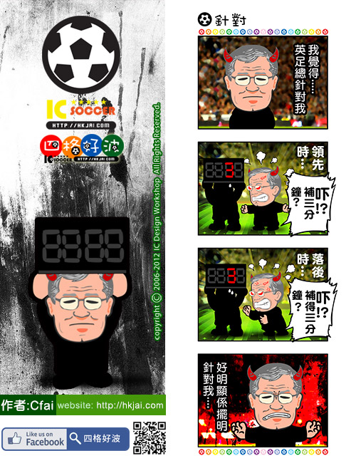 ปกติ HKJAI หรือ เจ้าของผลงาน การ์ตูนล้อฟุตบอลที่ดังที่สุดของฮ่องกง (ในไทยผมใช้ชื่อว่า 4 ช่องจบ) จะวาดท่านเซอร์เอามาล้อลงการ์ตูนรายสัปดาห์เสมอ