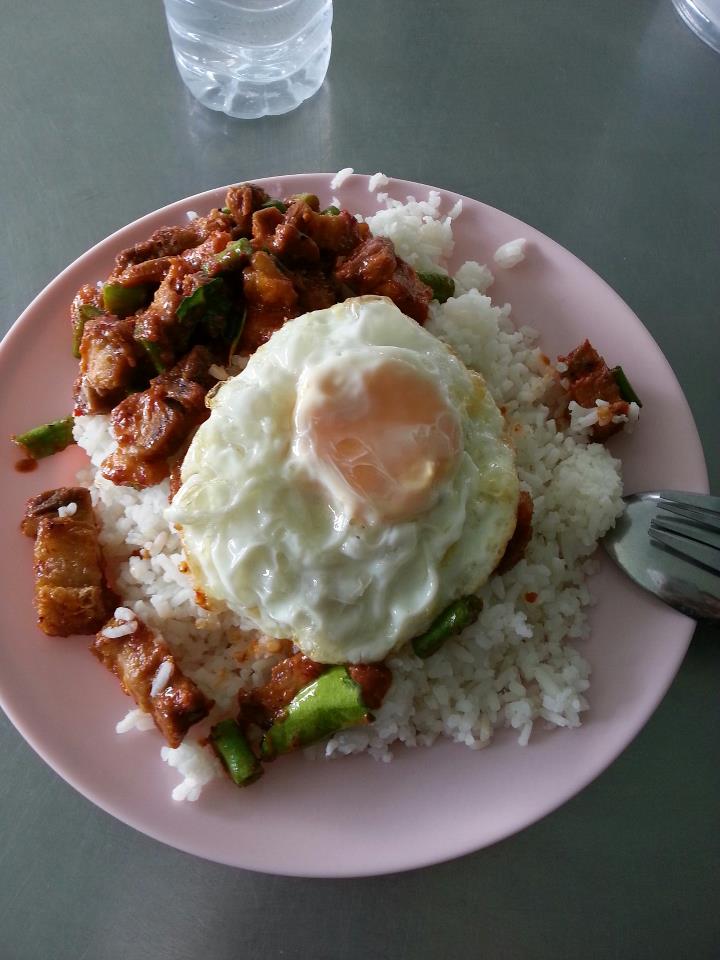 ข้าวหมูกรอบพริกแกงถั่ว ร้านตามสั่งเจ๊นก หมู่บ้านกฤษดานคร (ถนน แจ้งวัฒนะ-ปากเกร็ด 31)