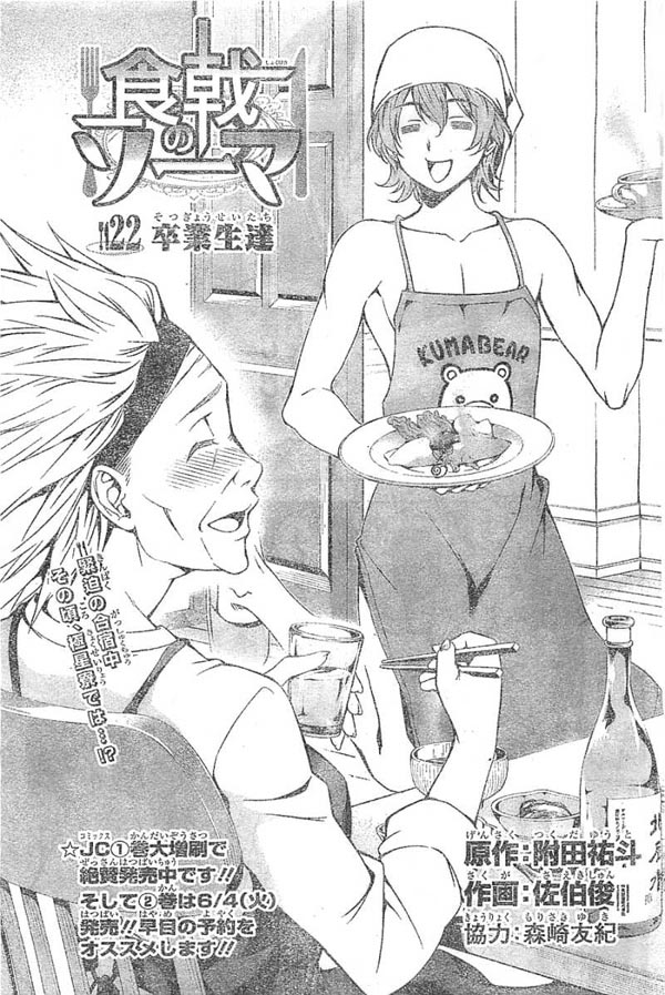 -โดจิม่าจะให้เมงุมิเป็นคนทำหลักและให้โซมะเป็นผู้ช่วย ซึ่งโซมะกับเมงุมิก็ถึงกับอึ้งพูดไม่ออกไปในทันที ก่อนที่โดจิม่าจะเอ่ยออกมาว่า งั้นก็เตรียมตัว