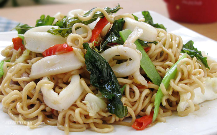 ผัดมาม่าปลาหมึกกะเพรากรอบ