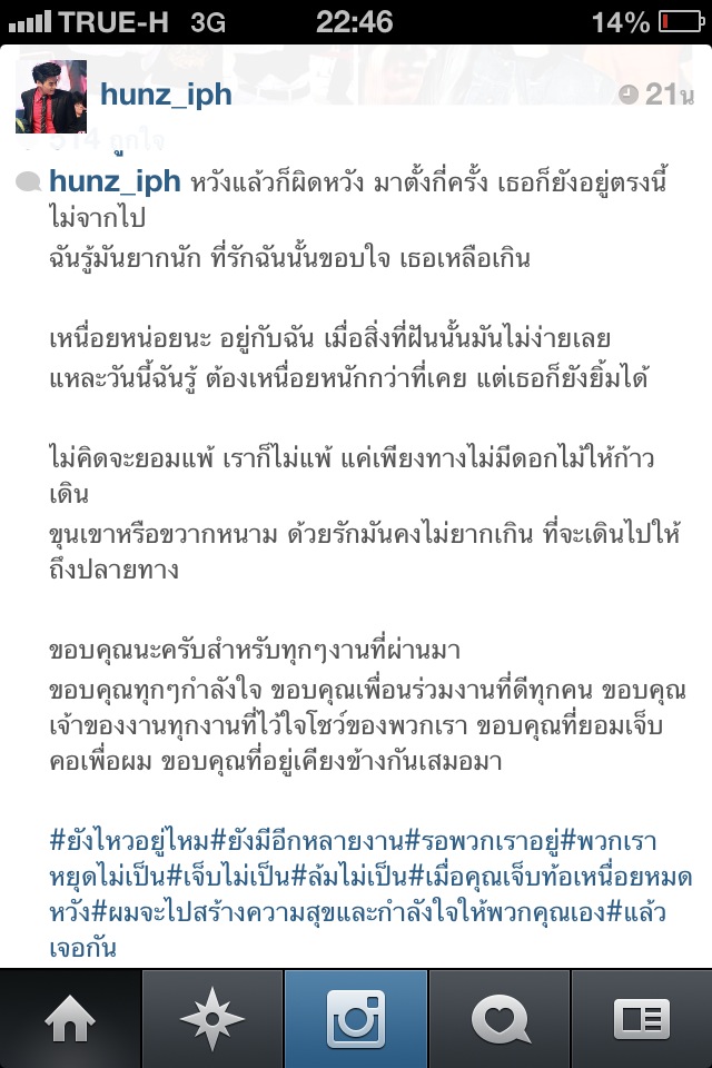 บอกไว้ก่อนเลยว่าไม่ได้ฟังเพลงนี้นานมาก นานจนลืมไปแล้ว แต่วันนี้มีคนๆหนึ่งทำให้ต้องค้นหาเพลงนี้มาฟัง อยากบอกคนๆนั้นว่า จะสู้ไปพร้อมกับพี่ พี่ไม่เหนื่อยHFCก็ไม่เหนื่อย พวกเราHFCรักพี่ฮั่นนะคะ
