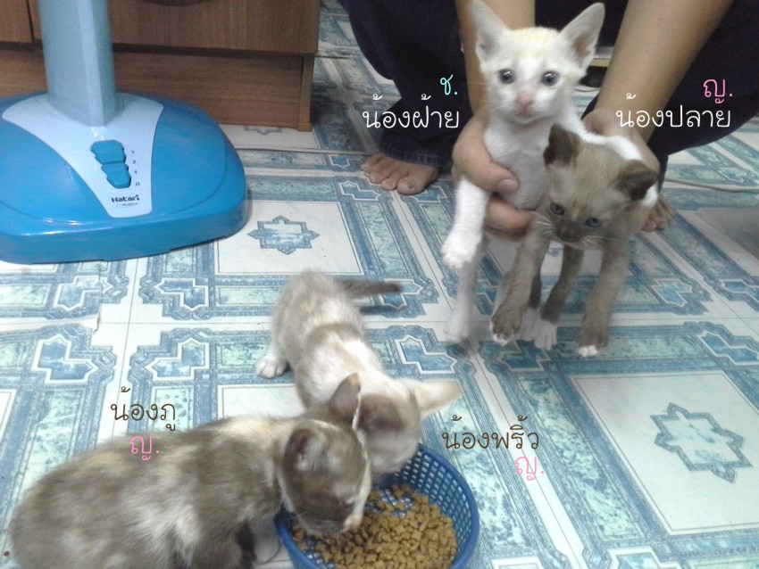 เด็กๆอายุประมาณ 2 เดือนค่ะ เป็นชาย 2 หญิง 1 น้องแถวๆบ้านใส่ตะกร้าเอามาให้เห็นเรารักแมว แต่ว่าที่บ้านมีอยู่ 4 นางแล้วรับเลี้ยงไว้ไม่ไหวจริงๆค่ะ เลยมาหาบ้านให้เด็