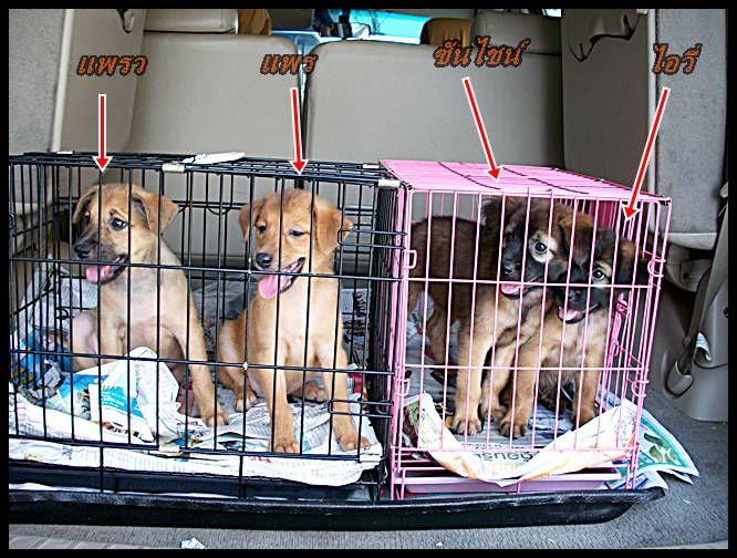 ขอโอกาสให้สาวๆ อย่างพวกหนูด้วยค่ะ..เด็กๆ ทั้งหมด เป็นตัวเมีย จากสองครอก ที่แม่หมาคลอดในวัด ซึ่งเ็ป็นล็อตลูกหมาตกค้าง หนุ่มๆ ได้้บ้านไปอย่างรวดเร็วทั้งหมด ตั้งแต่เดือนนิดๆ เหลือแต่สาวน้อย จากซ้ายไปขวา ด.ญ. แพรว, ด.ญ. แพร, ด.ญ. ซันไชน์, ด.ญ. ไอวี่ อายุราว 2-2.5 เดือน ร่าเริง น่ารัก ทุกตัว..ในภาพ พาน้องเดินทางไปตรวจสุขภาพ เทสต์หัด ค่ะ ทางผู้รับอุปการะ จะได้มั่นใจว่า น้องสุขภาพแข็งแรง ไม่เป็นโรคอะไร เพื่อจะได้ไม่เป็นภาระ และปลอดภัยกับหมาเดิม ของผู้ใจดีที่ถูกชะตา และอยากรับเลี้ยงน้องค่ะ