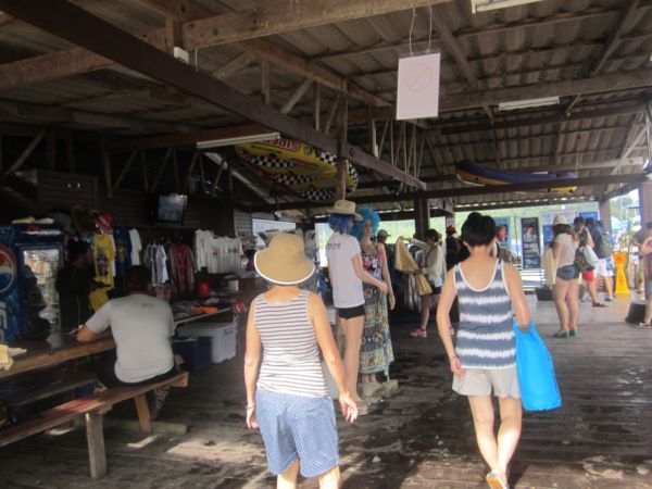 หลังจากนั้นก็แว่บไปแปลงร่างค่ะ ซึ่งคนต่อแถวเข้าไปแปลงร่างในห้องน้ำเยอะมากๆ ห้องน้ำมีน้อยเลยต้องเอื้อเฟื้อกันหน่อย เสร็จแล้วไกด์ประจำกรุ๊ปเราก็เรียกลูกทัวร์ที่มีสายริสแบนด์สีดำ ไปท่าเรือกันค่า