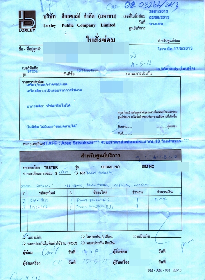 ขอบคุณผู้เกี่ยวข้องในการซ่อมโทรศัพท์ทุกท่านนะคะ