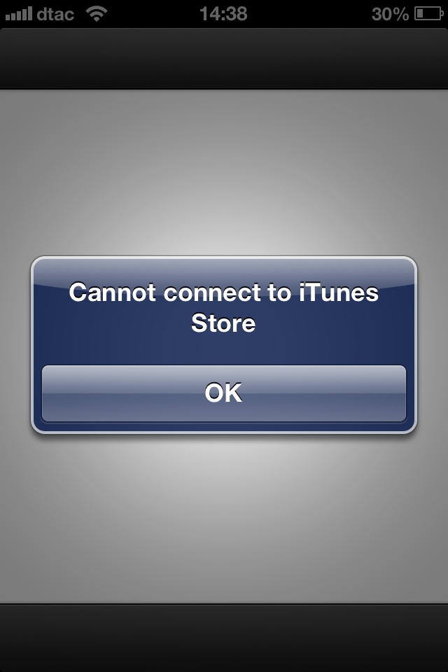 ก็เลยทำการเข้า App Store ปรากฏว่ามันเข้าไม่ได้ ข้อความมันเด้งว่า 'Cannot connect to iTunes Store'
