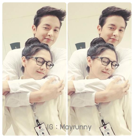 เอิ่มมม..รูปนี้ พี่เค้าบอกว่าเล่นกันระหว่างรอเข้าฉาก นุ้งเจมส์ชวนพี่พั้นช์เล่นอะไรคะ ? ตบแปะ ??? 55555