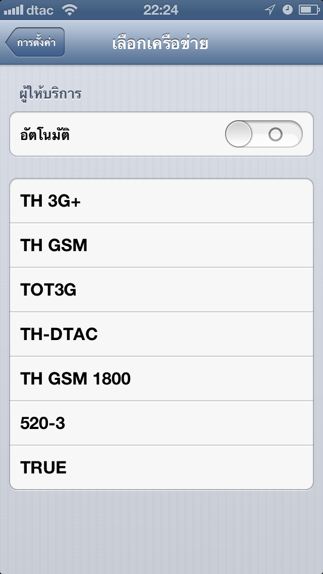 คงจะมีแต่ iPhone ละมั่ง ถ้าเป็นซิมเก่า จะขึ้น 520-03 หรือไปเปลี่ยนซิมมาแล้ว จะขึ้น AIS ทีนี้ ใครเลือก Carrier เป็น Automatic ดูดีๆนะค่ะ คุณอาจจะไม่ได้ต่อกับ คลื่น 2100 เสมอไป ต้องเข้าไปเชคดูใน sett