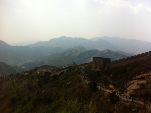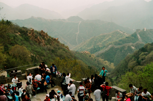 ทัวร์ผีนี้มีพาหนะเป็นรถตู้กลางเก่ากลางใหม่ ขึ้นรถปุ๊บเราก็กินกันทันที ลูกทัวร์ที่เหลือเงียบสงบ ส่วนพวกเราเอะอะโวยวายหาเรื่องฮากันได้ตลอด ผ่านไปเกือบๆชั่วโมงรถก็พาเราออกมานอกเมือง วิวสองข้างทางเริ่มเปลี่ยนเป็นภูเขาสูง แม่น้ำ วิวสวยงามเลยทีเดียวครับ และแล้ว สายตาเราก็สอดส่องไปเจอสิ่งก่อสร้างขนาดใหญ่อยู่บนยอดเขา ใช่แล้วครับ มันคือกำแพงเมืองจีน